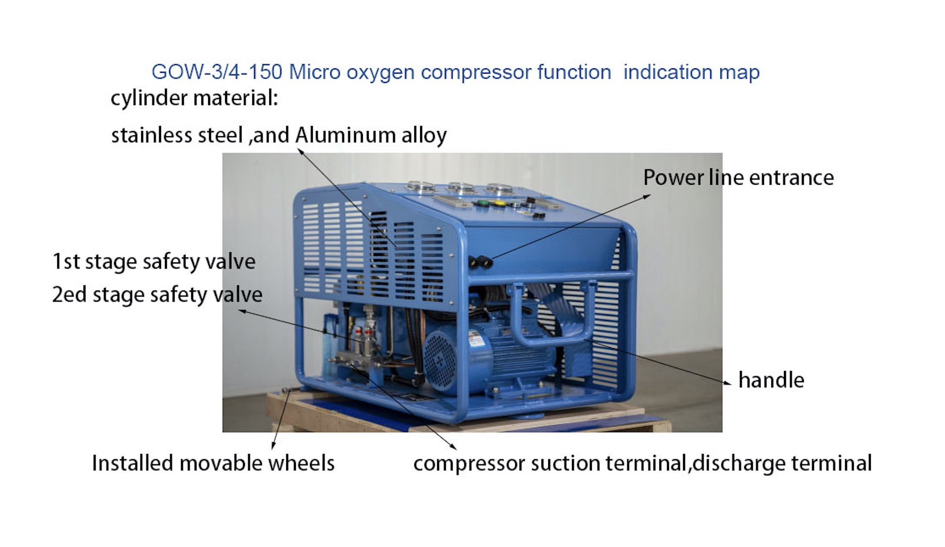 compressor de garrafa de oxigênio medicinal livre de óleo adota compressão de dois estágios, cilindro de aço inoxidável, a entrada é equipada com proteção de baixa pressão de admissão, a extremidade de exaustão é equipada com proteção de alta pressão de escape e a temperatura de exaustão é alta. Se a temperatura exceder a sobrepressão, o sistema irá alarmar e parar, garantindo uma operação segura. De tamanho pequeno, leve e equipado com rodinhas, é muito adequado para uso móvel.